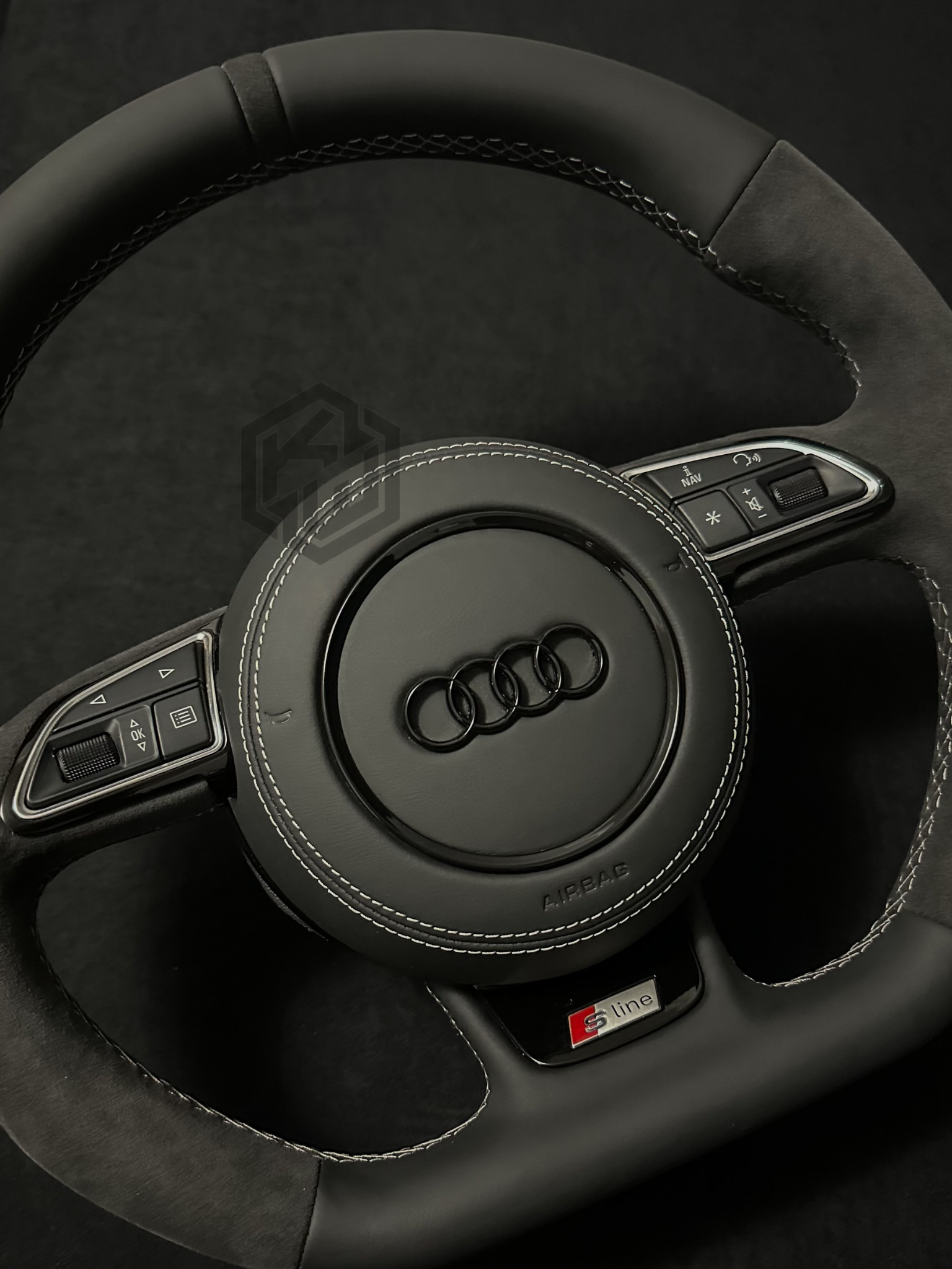Upgrade your Audi driving experience with one of our Perfectly retrimmed wheels for 2013-2016 models. Made with genuine Leather and Alcantara, this steering wheel has the KW touch giving you improved handling and a luxurious feel. Perfect for those looking to elevate their driving performance and style.